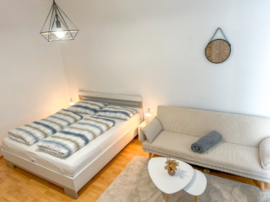 Benvenuti negli Serenity Apartments, Leoben! Vicino alla piazza principale (5 minuti), Montan Uni (10 minuti) e Asia Spa. Vivi 32m² di comfort semplice: letto matrimoniale Queen size, comodo divano, cucina completamente attrezzata, bagno separato e WC con lavatrice. Wi-Fi gratuito e parcheggio. Rilassati in giardino d'estate. Prenota ora - tranquillità e comfort ti aspettano!
